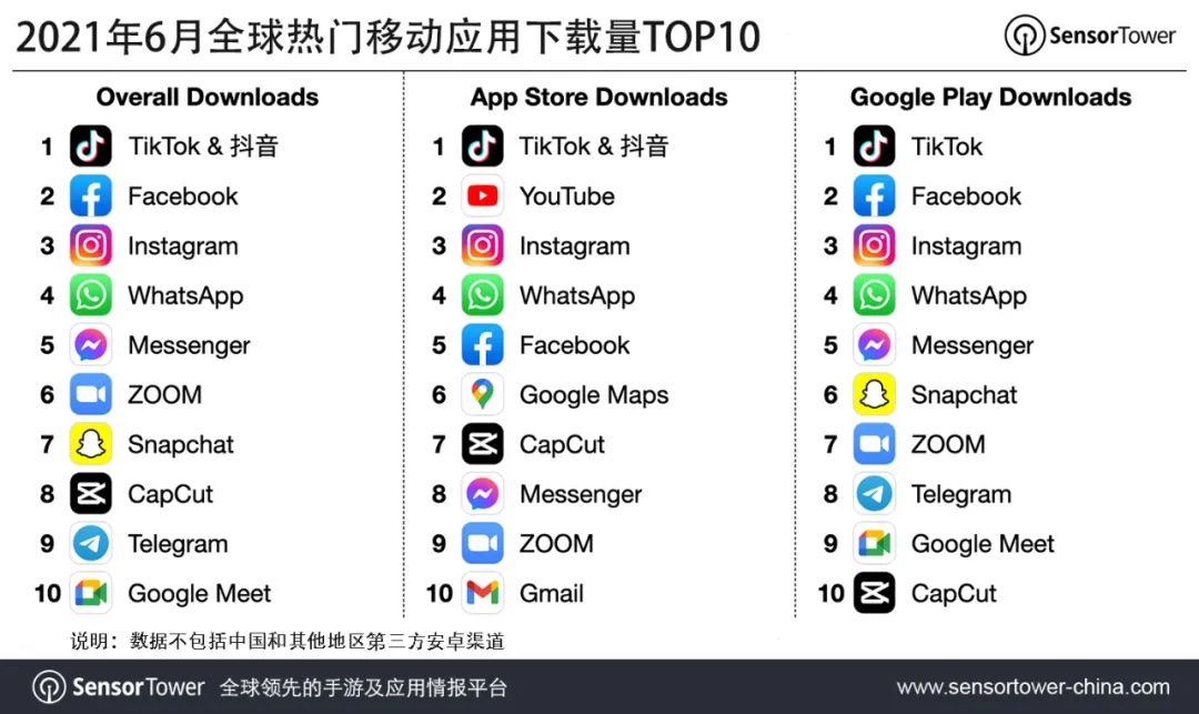 抖音与 TikTok 登顶 2021 年 6 月全球热门移动应用下载榜